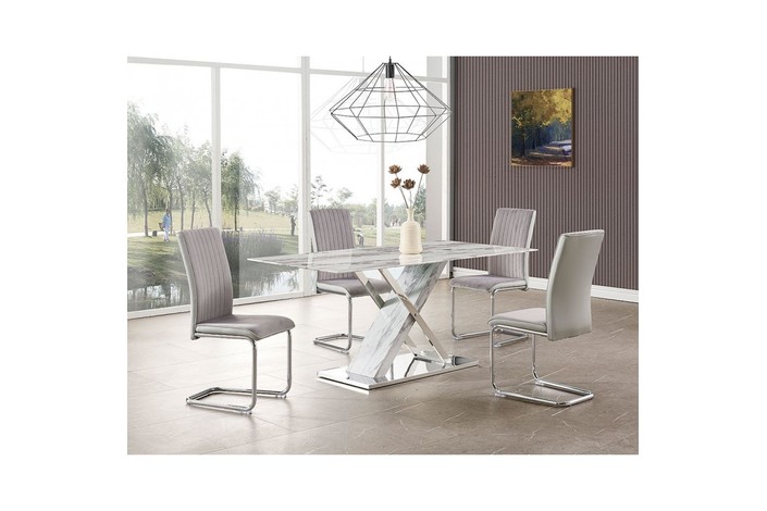 Mesa SIGRID, acero inoxidable, DM, tapa de cristal templado, 180 x 90 cms