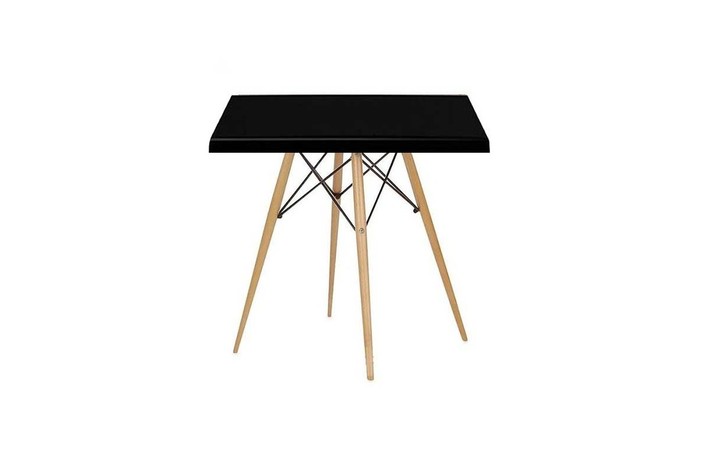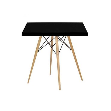 Mesa de diseño, base de madera de haya con varillas metálicas de unión, tapa de 80x80 cms, color a elegir. Sillas y sillones a juego.