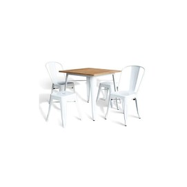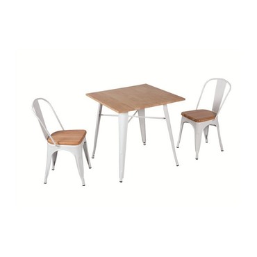 Mesa TOL, acero, blanca, madera, 80x80 cms