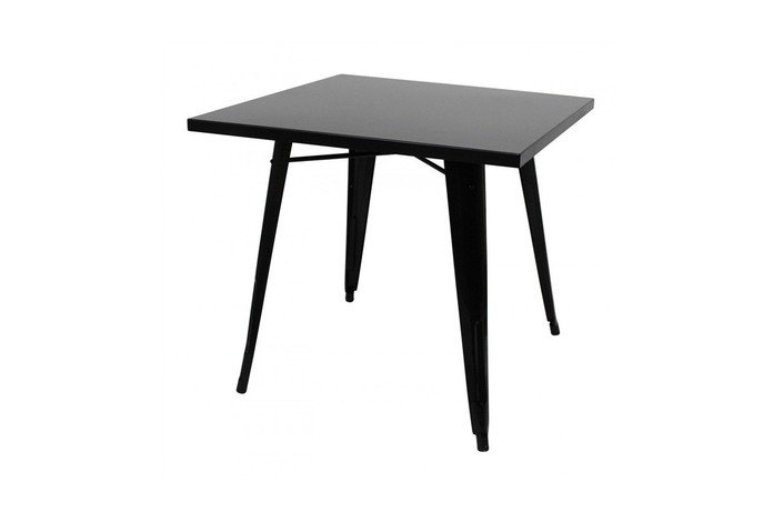 Mesa de diseño, estructura y tapa de acero, pintada en negro. Uso en interiores o exteriores