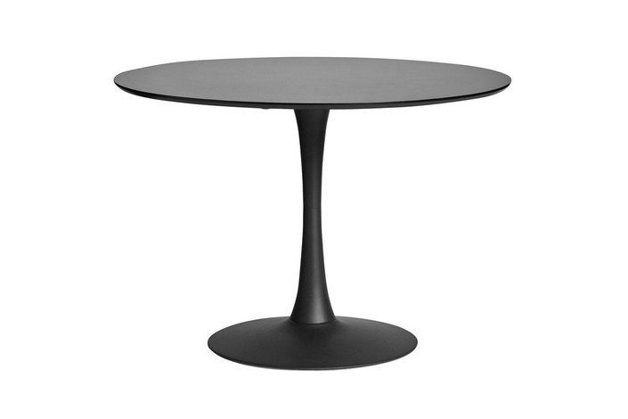 Mesa de diseño, base metálica de 60 cms. de diámetro, tapa lacada negra, 100 cms de diámetro.