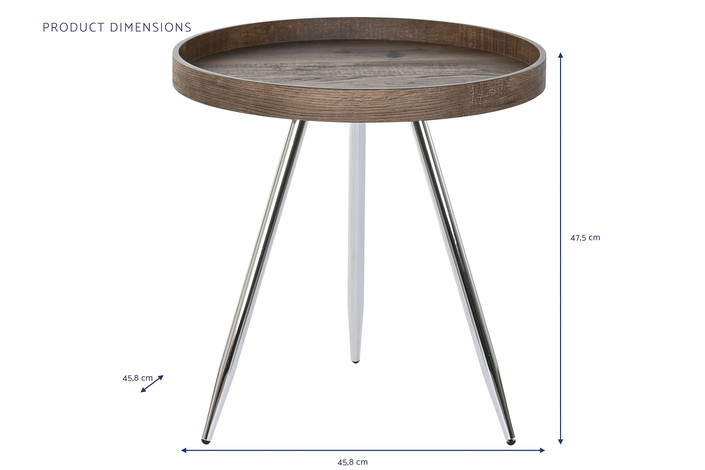 Dimensiones (cm) Longitud 45,8  |  Fondo 45,8  |  Altura 47,5 Peso neto producto (kg) 2,58 Material Acero  |  Mdf