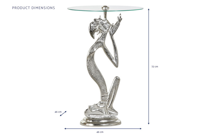 Dimensiones (cm) Longitud 46  |  Fondo 46  |  Altura 72 Peso neto producto (kg) 6,38 Material Aluminio  |  Cristal
