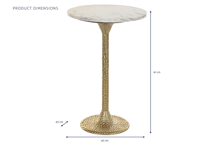 Dimensiones (cm) Longitud 40  |  Fondo 40  |  Altura 61 Material Aluminio  |  Marmol