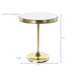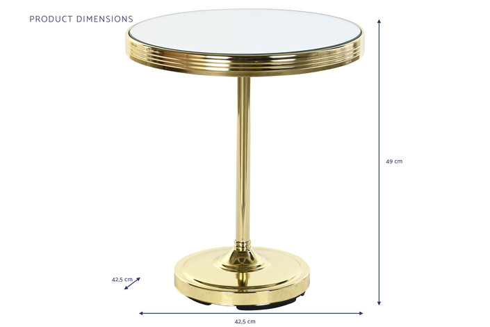 Dimensiones (cm) Longitud 42,5  |  Fondo 42,5  |  Altura 49 Peso neto producto (kg) 5,80 Material Laton  |  Espejo