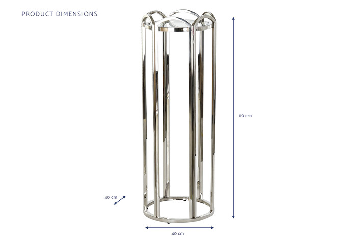 Dimensiones (cm) Longitud 40  |  Fondo 40  |  Altura 110 Peso neto producto (kg) 11,00 Material Metal  |  Cristal