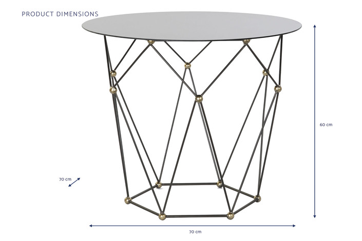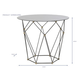 Dimensiones (cm) Longitud 70  |  Fondo 70  |  Altura 60 Peso neto producto (kg) 5,40 Material Metal  |  Cristal
