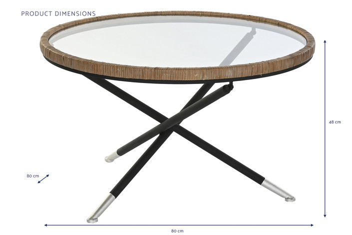 Dimensiones (cm) Longitud 80  |  Fondo 80  |  Altura 48 Peso neto producto (kg) 8,10 Material Metal  |  Cristal