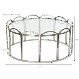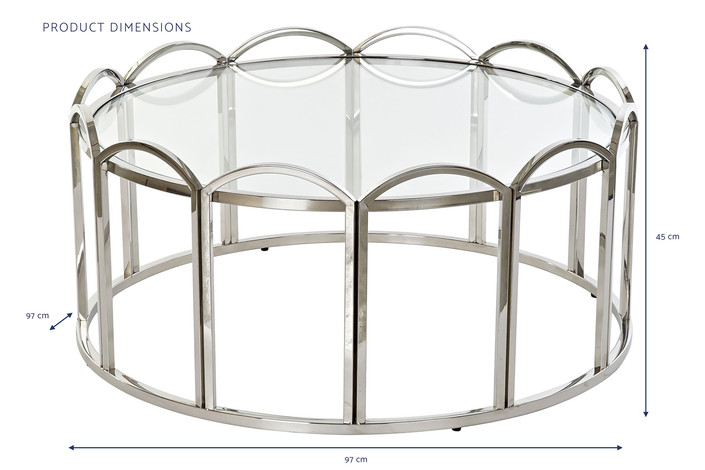 Dimensiones (cm) Longitud 97  |  Fondo 97  |  Altura 45 Peso neto producto (kg) 20,00 Material Metal  |  Cristal