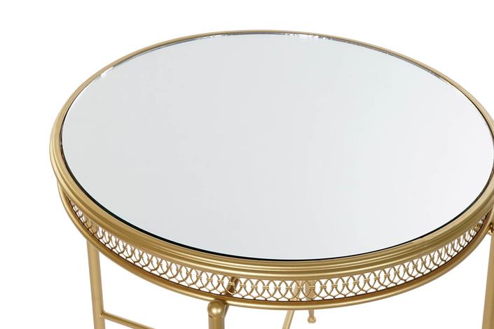 Dimensiones (cm) Longitud 56  |  Fondo 56  |  Altura 56 Peso neto producto (kg) 7,50 Material Metal  |  Espejo