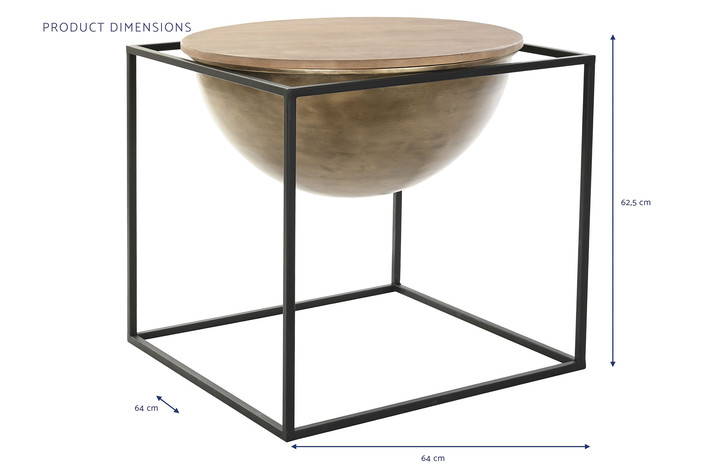 Dimensiones (cm) Longitud 64  |  Fondo 64  |  Altura 62,5 Peso neto producto (kg) 9,28 Material Metal  |  Madera