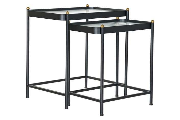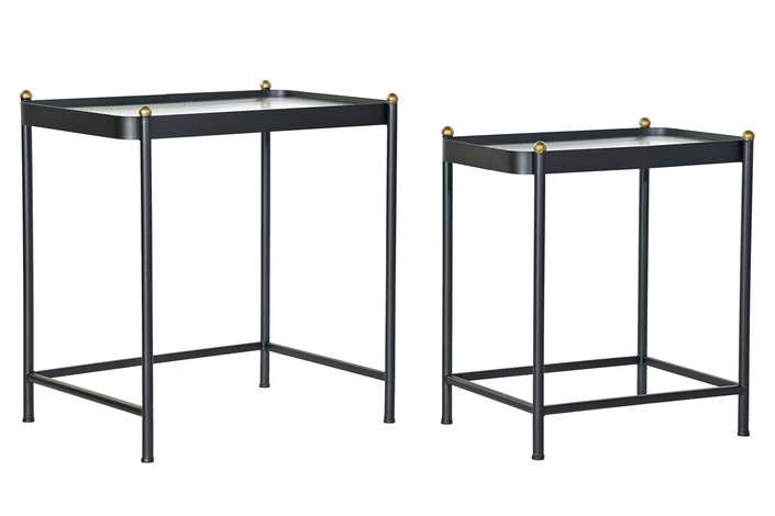 MESITA AUXILIAR SET 2 METAL CRISTAL 60X43X62 NEGRO