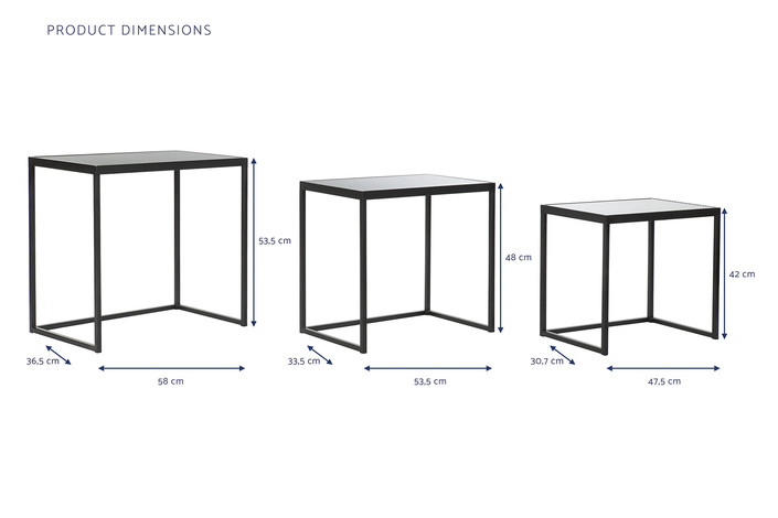 MESITA AUXILIAR SET 3 METAL CRISTAL 58X36,5X53,5