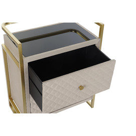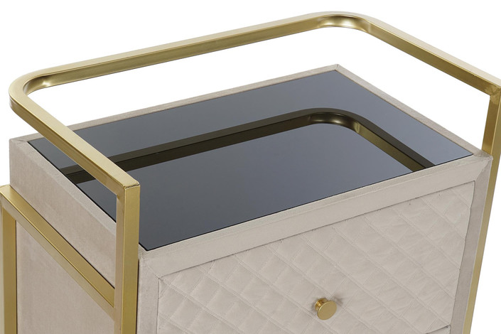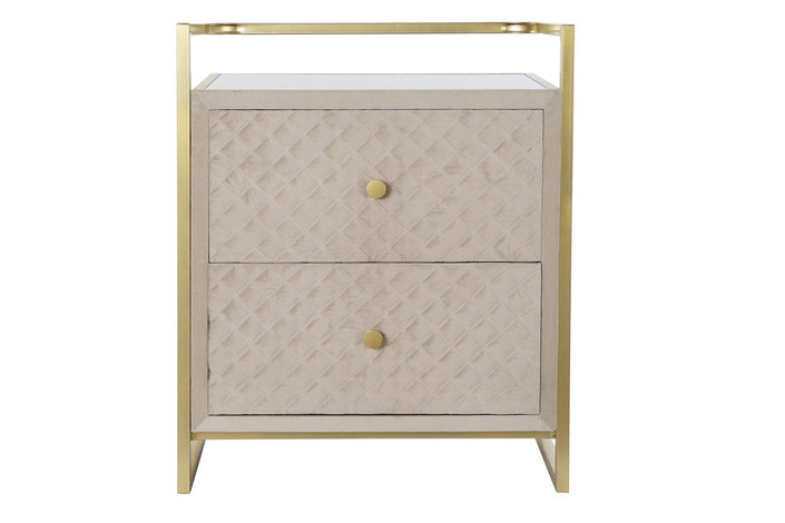 Dimensiones (cm) Longitud 60  |  Fondo 35  |  Altura 75 Peso neto producto (kg) 20,00 Material Velvet  |  Cristal  |  Metal