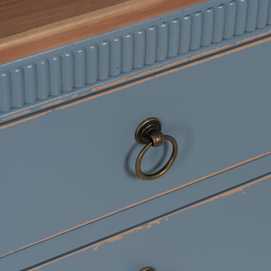 Material: madera de abeto - Dm. Altura patas: 19cm. Medida cajones: 40x11cm.