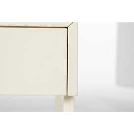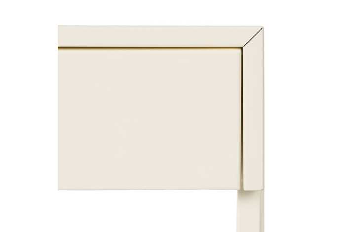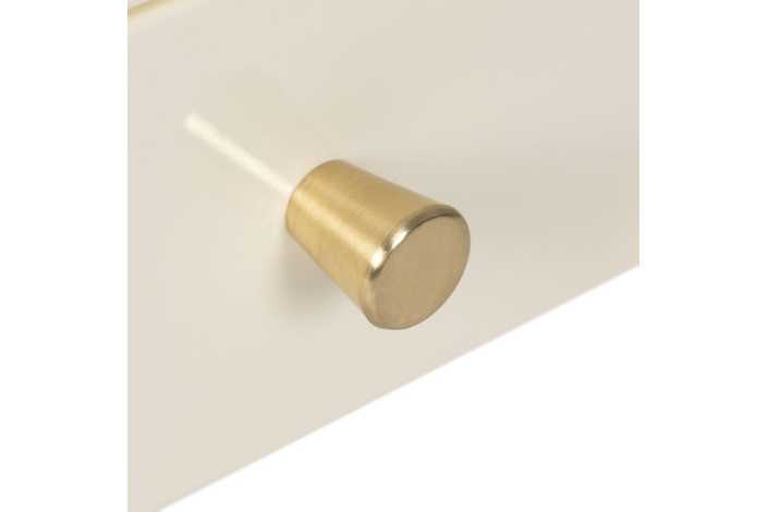 REQUIERE MONTAJE. Altura patas:39,4cm. Cajón:36,5x35x6cm. Tirador dorado:1,8x1,8cm. Acabado brillo.