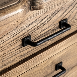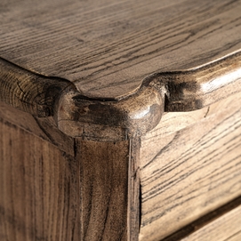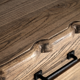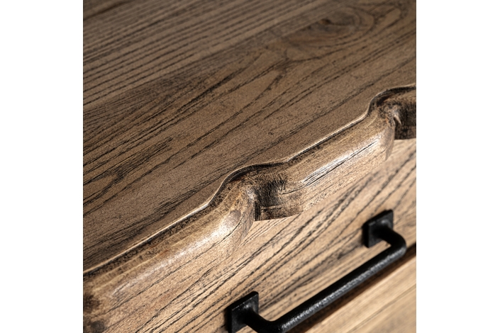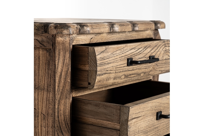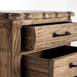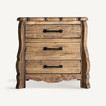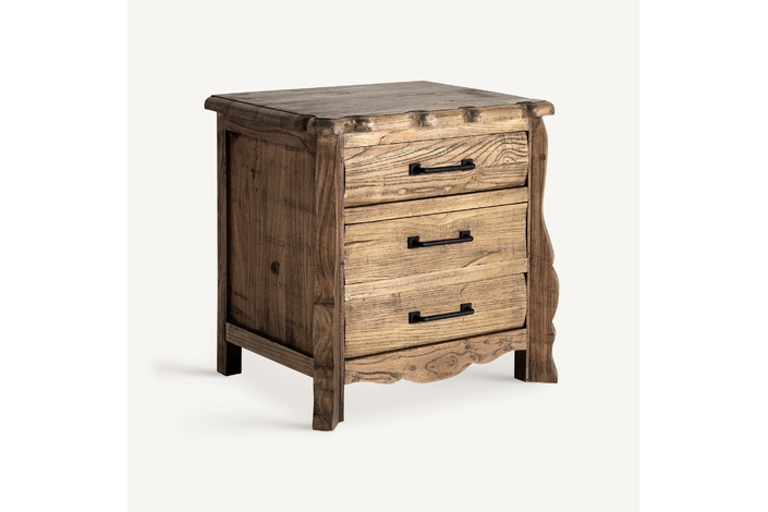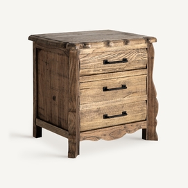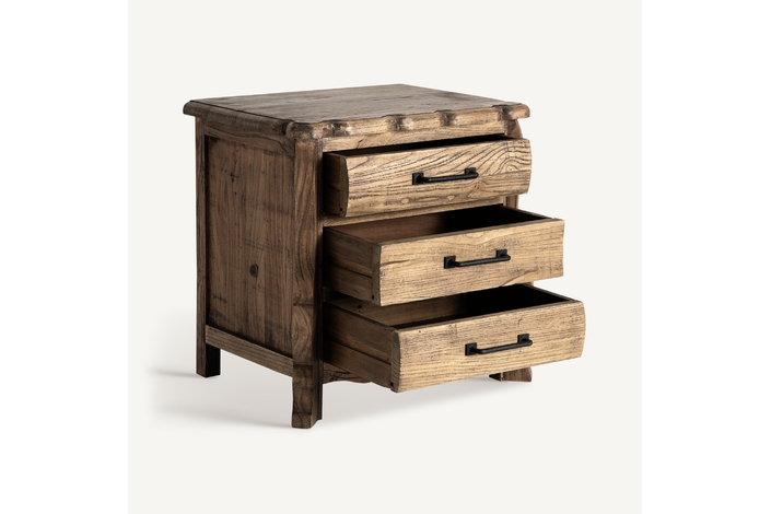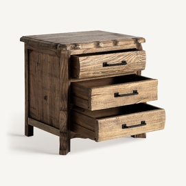 Mesita de noche Norvik de estilo contemporáneo, fabricado en madera de olmo en color marrón.