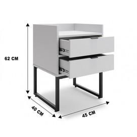 Mesita de noche TOKYO, multiusos, metal negro, 2 cajones, MDP blanco