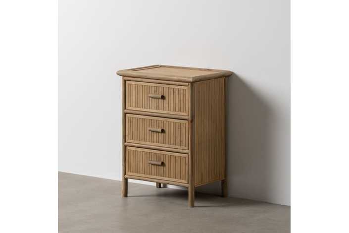 Material: bambú Altura patas: 10cm. Medida cajones: 38,5x14.5cm. No precisa montaje.