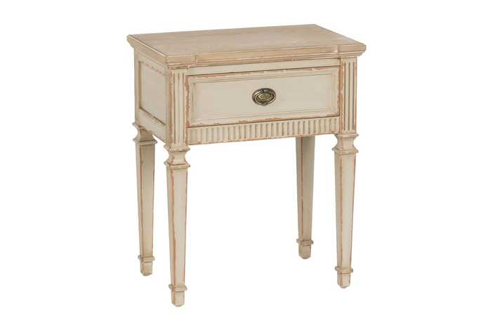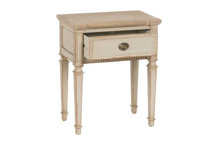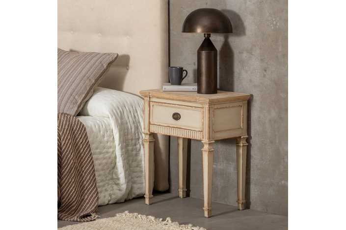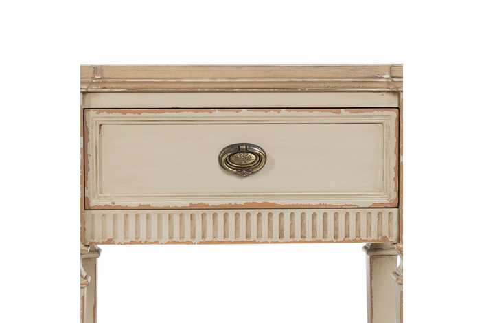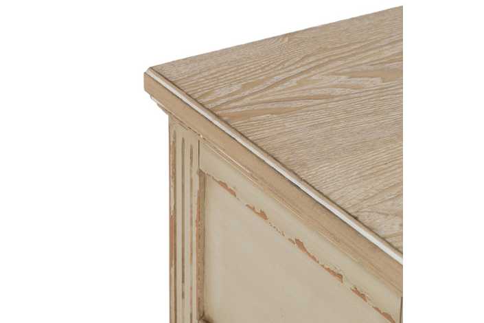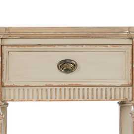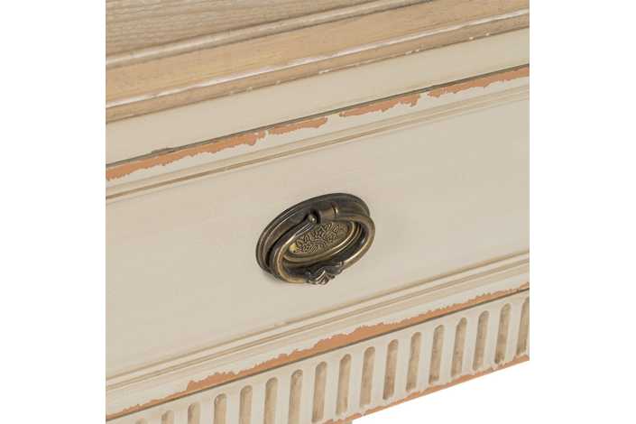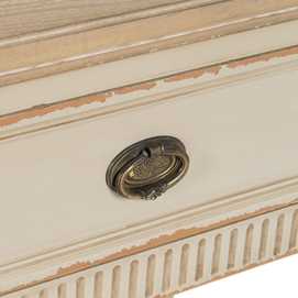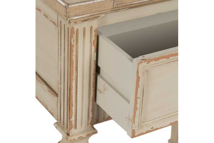 Material: madera de abeto - Dm. Altura patas: 44cm. Medida cajones: 43.5x14cm.