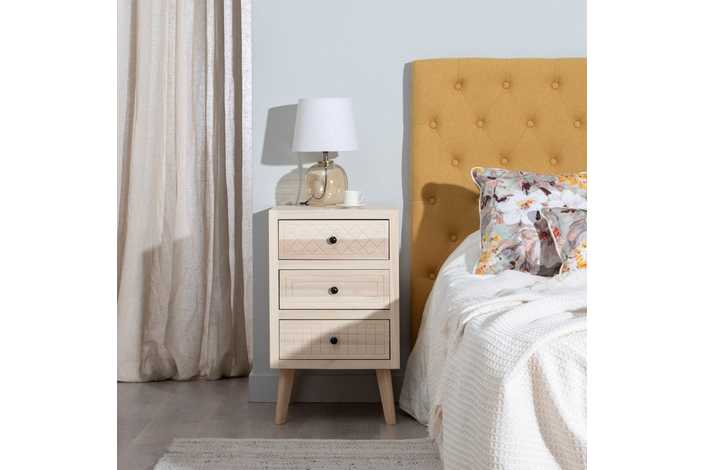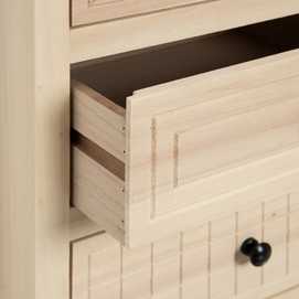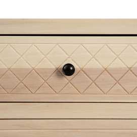 MATERIAL PATAS: MADERA DE ÁLAMO MATERIAL CAJONES: MADERA DE ÁLAMO MATERIAL TIRADORES: ZAMAK ALTURA PATAS: 18.5CM