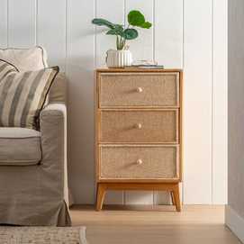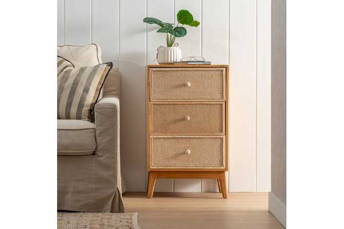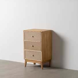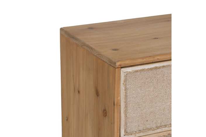 Material: estructura principal madera de abeto - Dm. Altura patas: 15cm. Medida cajones: 42.5x19cm.