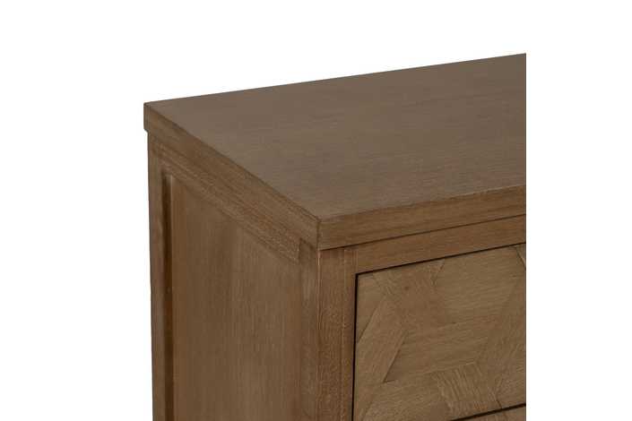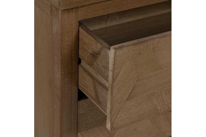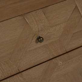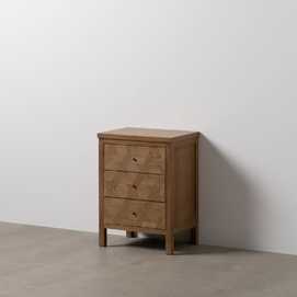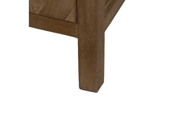 Material: estructura principal madera de paulonia - resto Dm. Altura pata: 10.5cm. Medida cajón: 40x15cm. No precisa montaje.