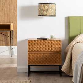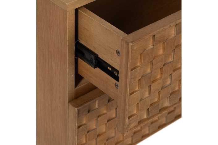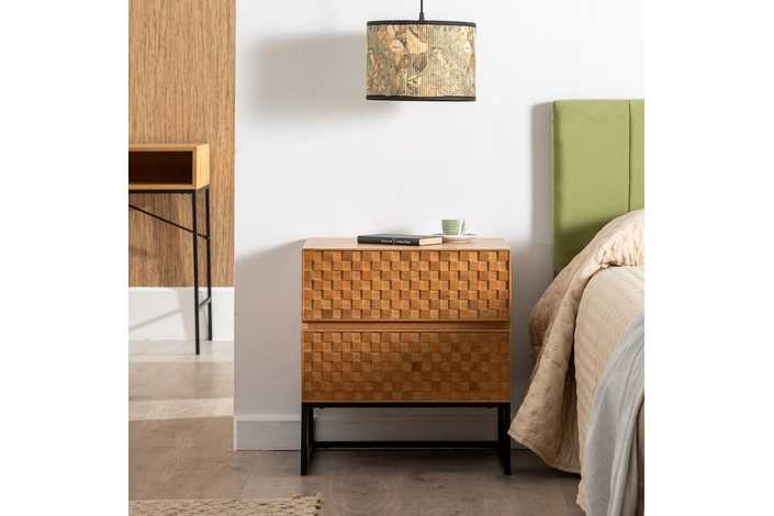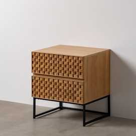 Material: Dm - metal (hierro) - vinilo madera de fresno. Medida cajones: 52x18cm. Altura pata: 18cm. Patas para montar.