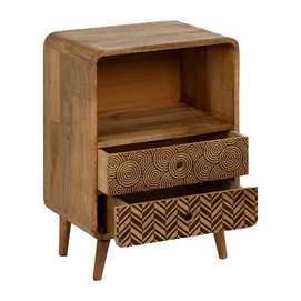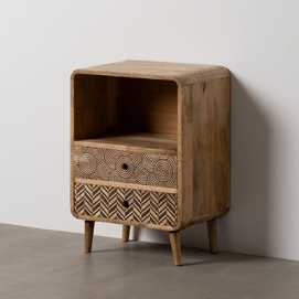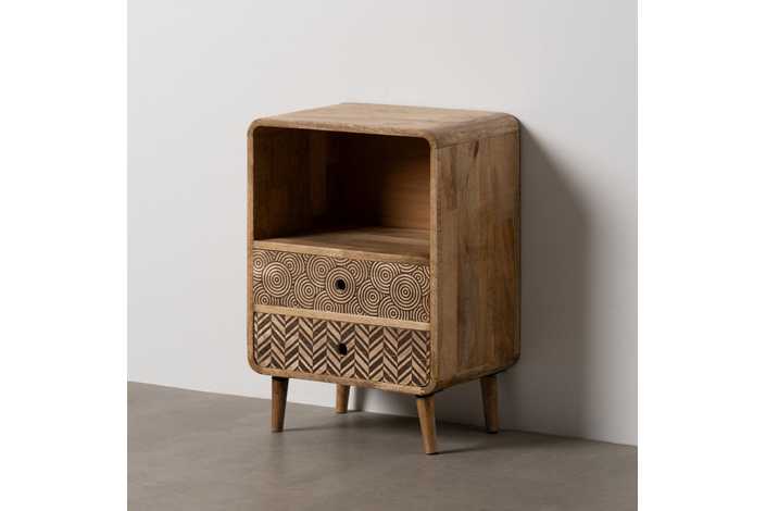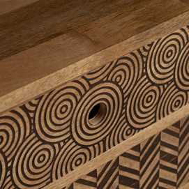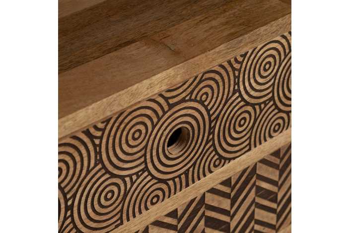 MATERIAL: MADERA DE MANGO Altura patas:12 cm. Longitud hueco:41,5cm. Altura hueco: 23cm. Medidas cajones:33x9,5cm.