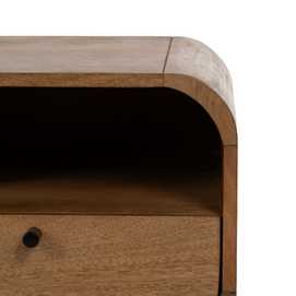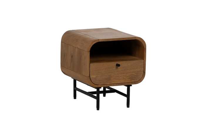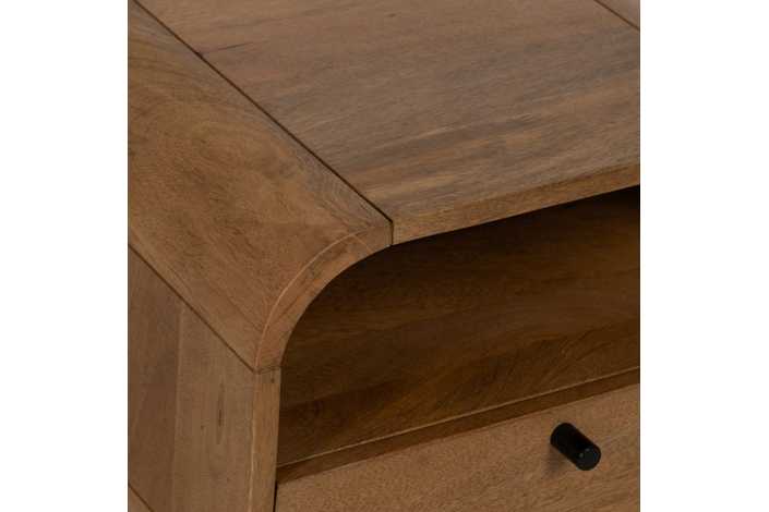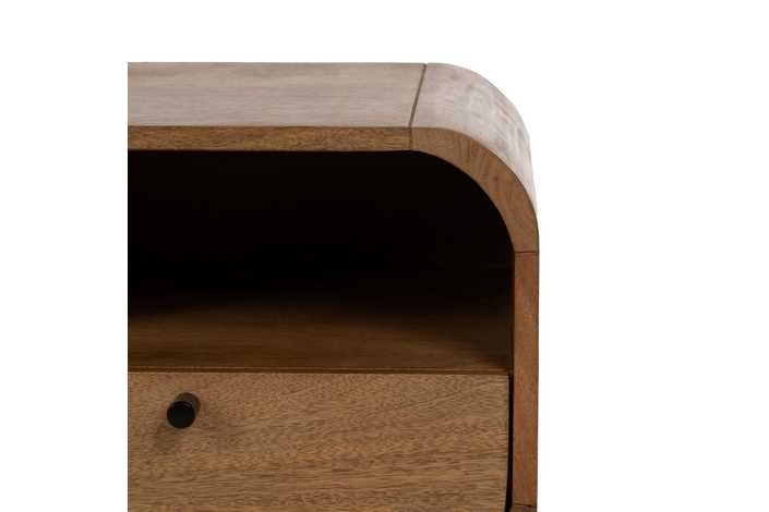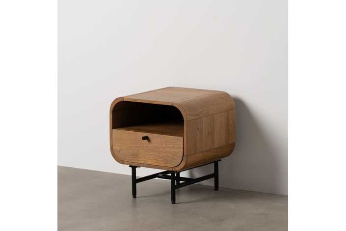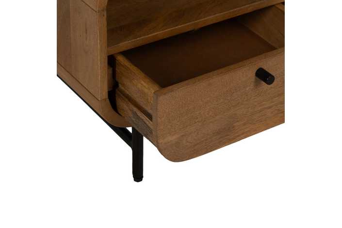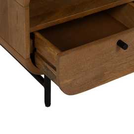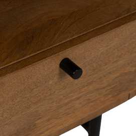 Material: madera de mango, hierro. Cajón: 36,5x13,5cm. Hueco: 37x13cm. Altura patas: 15,5cm.