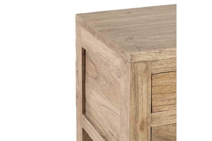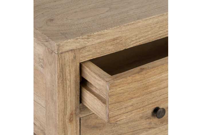 Material: madera de mindi. Medida cajones: 35x7,5cm. Altura patas: 10,5cm. Altura hueco: 25cm.