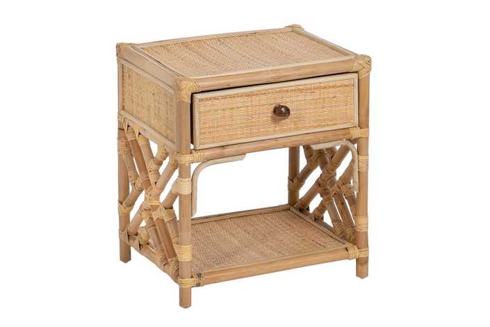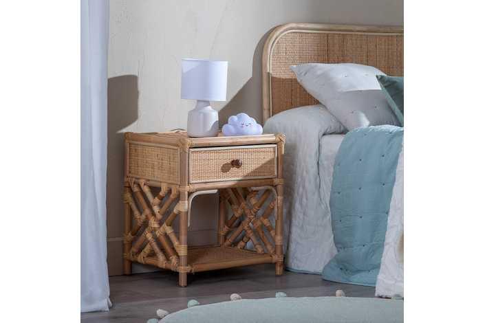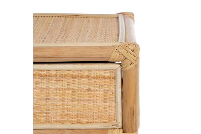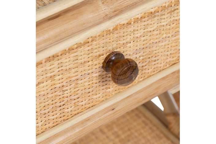 Material: ratán. Cajón: 39x12cm. Altura patas: 5cm. Altura estante: 27cm.