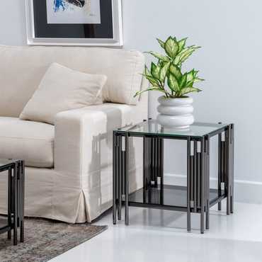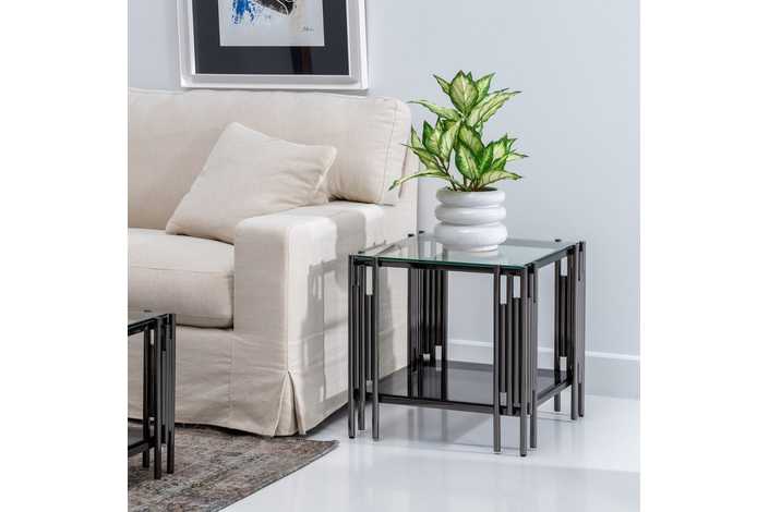 MESITA NEGRO CRISTAL / ACERO INOXIDABLE 53,50 X 53,50 X 53 C