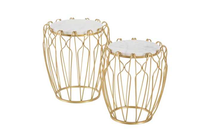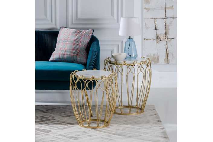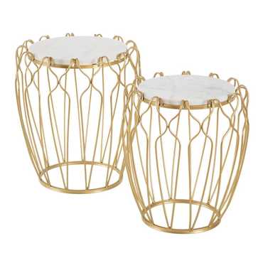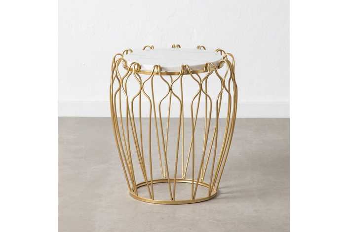 MESITA ORO-BLANCO METAL-MÁRMOL SALÓN 50 X 50 X 54,60 CM