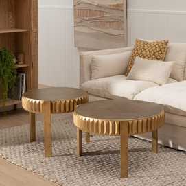 MESITA ORO ENVEJECIDO METAL SALÓN 64 X 64 X 50 CM