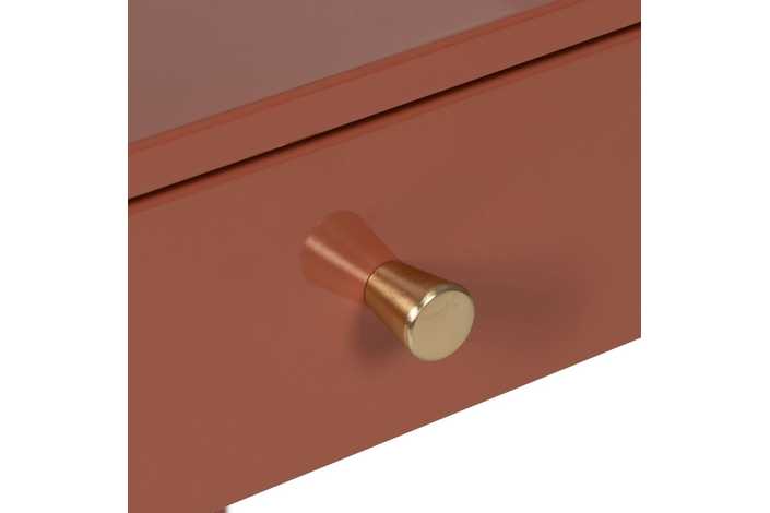 REQUIERE MONTAJE. Altura patas:39,4cm. Cajón:36,5x35x6cm. Tirador dorado:1,8x1,8cm. Acabado brillo.