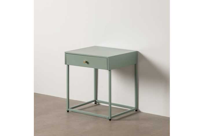 REQUIERE MONTAJE. Altura patas:39,4cm. Cajón:36,5x35x6cm. Tirador dorado:1,8x1,8cm. Acabado mate.
