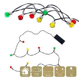 FUNCIONA A PILAS: 2 X AA (NO INCLUIDAS). IP20 (SOLO USO INTERIOR) CABLE EN COLOR NEGRO. DISTANCIA ENTRE BOMBILLAS: 10 CM. 10 LEDS DE LUZ CÁLIDA EXTENSIÓN DE CABLE: 30 CM. ESTE PRODUCTO NO TIENE LA FUNCIÓN DE TEMPORIZADOR. 10 FIGURAS BOMBILLAS: 1,50 X 2CM. PRESENTACIÓN EN CAJA DE PVC Y ETIQUETA DE COLOR.