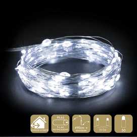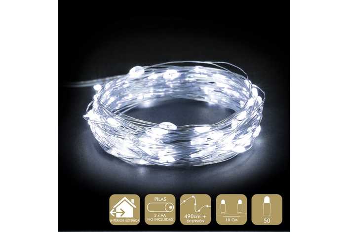 GUIRNALDA A PILAS 3 X AA (NO INCLUIDAS). IP44. 8 FUNCIONES Y 6 HRS DE FUNCIONAMIENTO. LUZ FIJA. USO INTERIOR/EXTERIOR. LONGITUD: 490 CM + EXTENSIÓN. DISTANCIA ENTRE BOMBILLAS: 10CM.