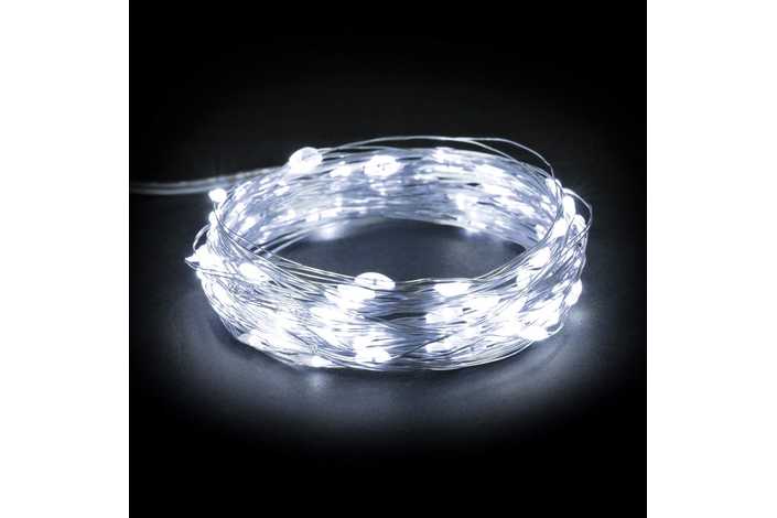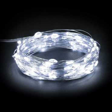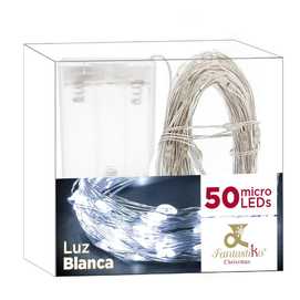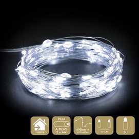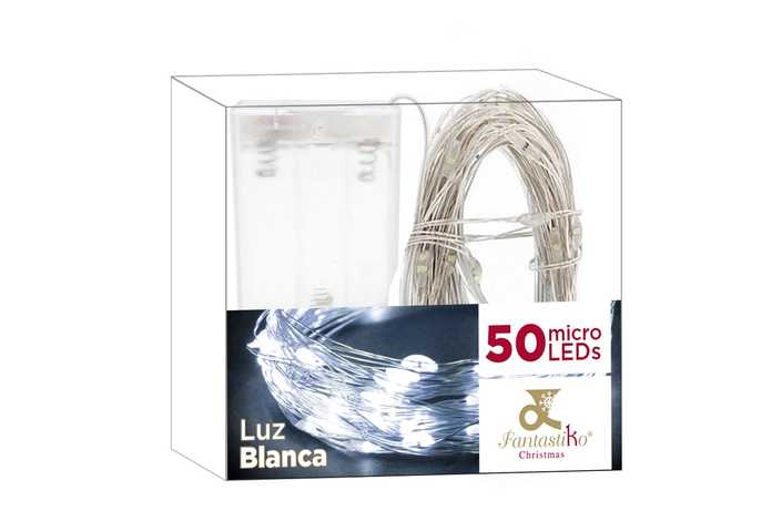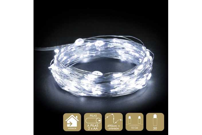 FUNCIONA A PILAS: 2 X AA (NO INCLUIDAS). IP20 (SOLO USO INTERIOR) CABLE TRANSPARARENTE DISTANCIA ENTRE BOMBILLAS: 10 CM. 50 LEDS DE LUZ FRÍA EXTENSIÓN DE CABLE: 30 CM. ESTE PRODUCTO NO TIENE LA FUNCIÓN DE TEMPORIZADOR. PRESENTACIÓN EN CAJA DE PVC Y ETIQUETA DE COLOR.