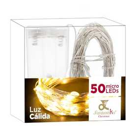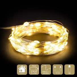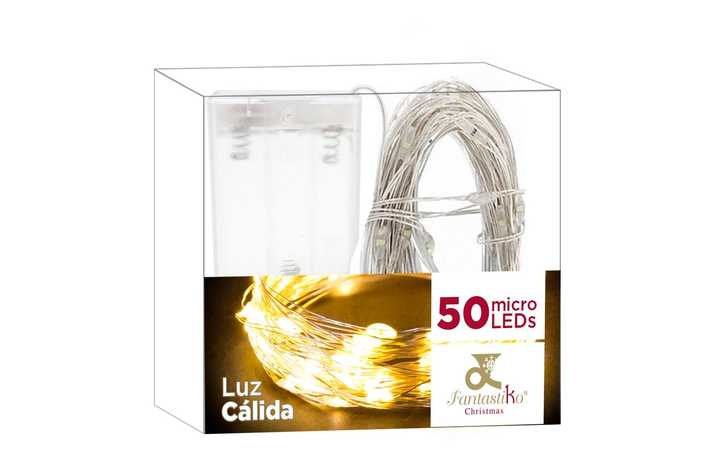 FUNCIONA A PILAS: 2 X AA (NO INCLUIDAS). IP20 (SOLO USO INTERIOR) CABLE TRANSPARARENTE DISTANCIA ENTRE BOMBILLAS: 10 CM. 50 LEDS DE LUZ CÁLIDA EXTENSIÓN DE CABLE: 30 CM. ESTE PRODUCTO NO TIENE LA FUNCIÓN DE TEMPORIZADOR. PRESENTACIÓN EN CAJA DE PVC Y ETIQUETA DE COLOR.