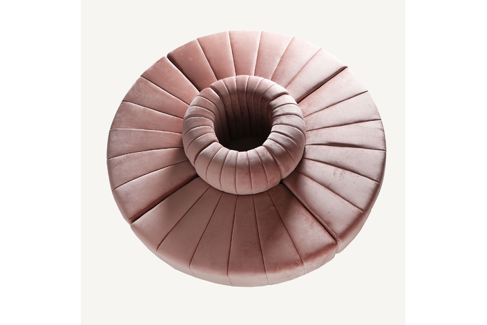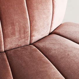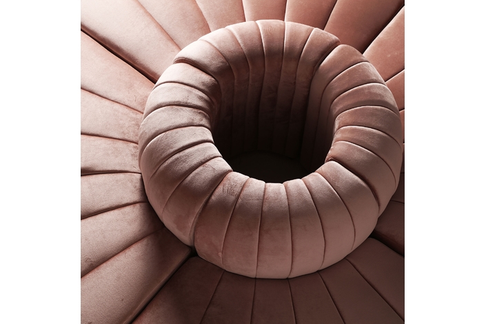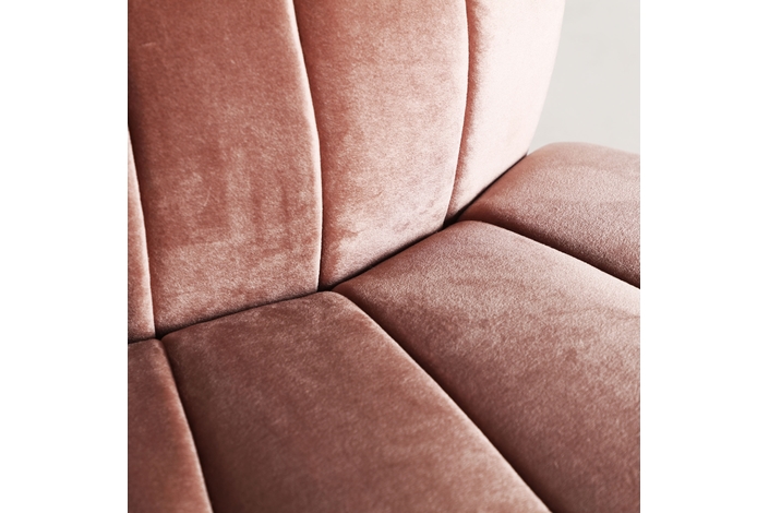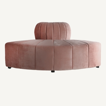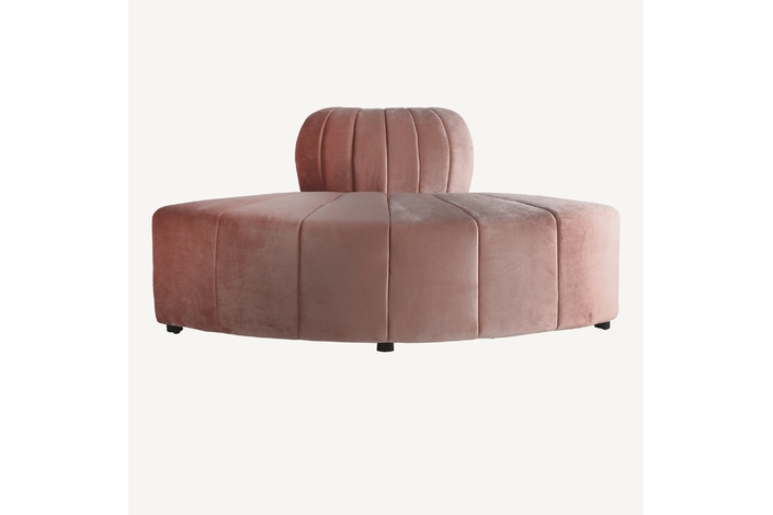 Confort con curvas. Este módulo central de sofá estilo art déco está fabricado en madera de pino y terciopelo rosa palo, ideal para crear composiciones envolventes con personalidad.