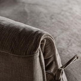 Módulo sofá esquinero argenta, en color marrón, de estilo colonial. Fabricado en madera de pino, combinado con madera contrachapada y acrílico. Producto desenfundable. Compatible con: 30125,30123,30127,31209.