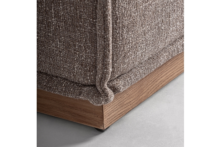 Módulo sofá esquinero Aspach de estilo contemporáneo, fabricado en poliéster en color marrón con acabado jaspeado, combinado con madera de pino en color marrón.