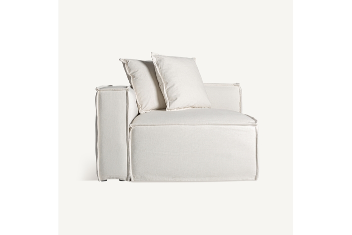 Módulo sofá esquinero izquierda virolle, de estilo colonial. Fabricado en lino, en color blanco liso, combinado con algodón y espuma. Producto desenfundable. Compatible con: 36088.