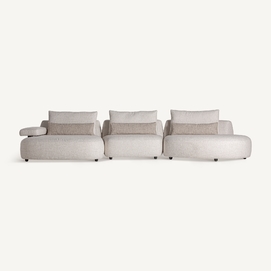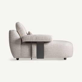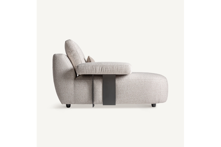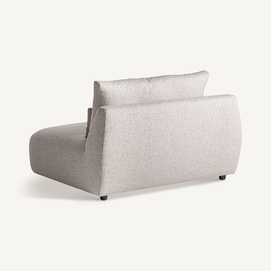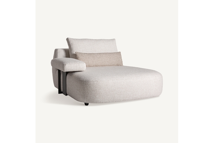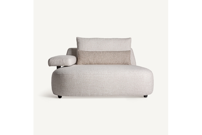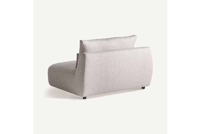 Módulo sofá esquinero wingles, de estilo contemporáneo. Fabricado en madera de alerce, en color beige jaspeado, combinado con poliéster, en color blanco roto y espuma. Patas de hierro en color negro. Cojines rellenos de pluma de oca mixta. . Compatible con: 36091,36092.