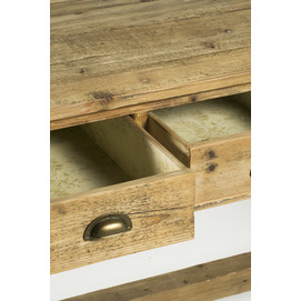 Tiene 6 cajones pero 2 son falsos / Il a 6 tiroirs mais 2 sont faux / It has 6 drawers but 2 are fake. Medidas cajones/ Mesures tiroirs/ Drawers measure: 28x44x10 cm. Nuestra madera rústica, reciclada o envejecida tiene irregularidades en su superfiMedidas: 220x70x83h cm