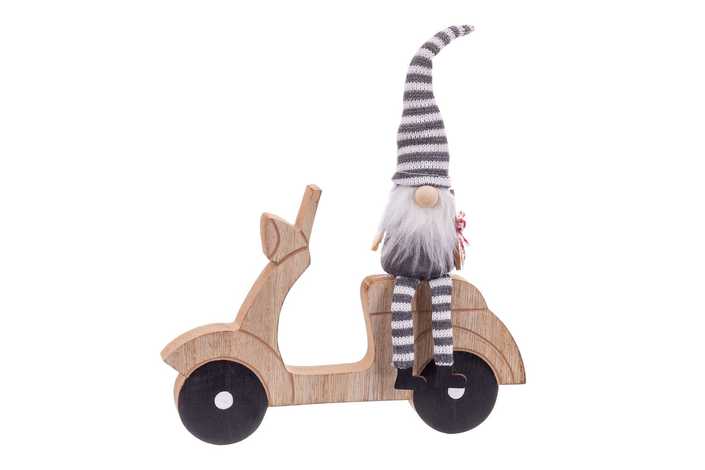 MOTO PAPA NOEL MADERA / TEJIDO 19 X 2 X 19 CM