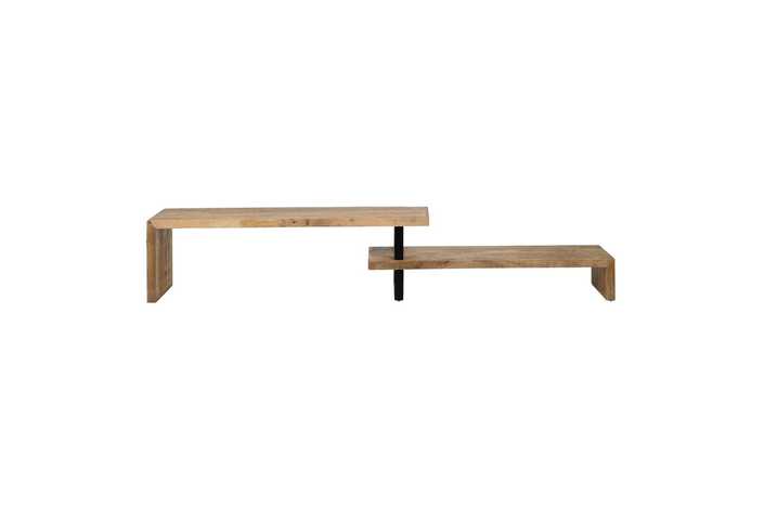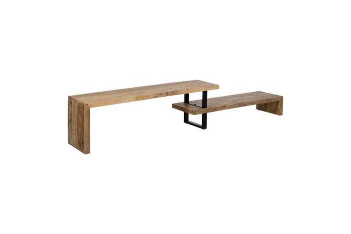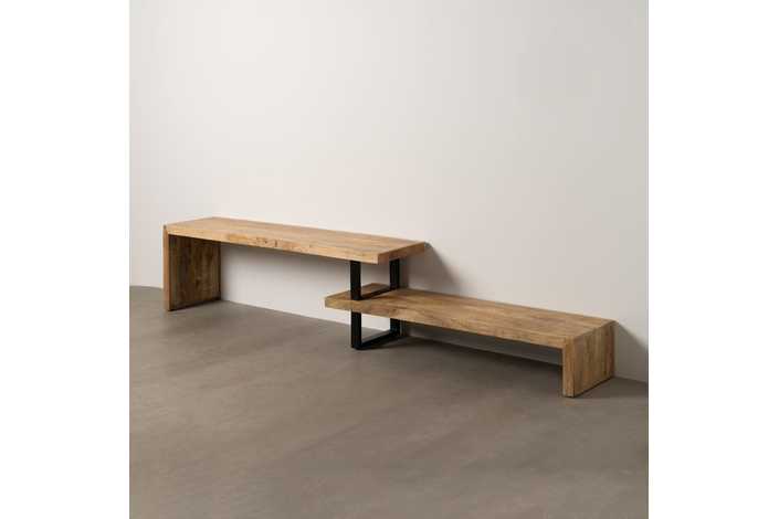 Material: madera de mango, hierro. Medidas módulo grande: 160x50cm. Medidas módulo pequeño: 140cmx36cm.