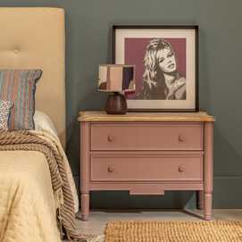 Material: madera de abeto - Dm Altura patas: 18cm. Medida cajones: 66x15.5cm.